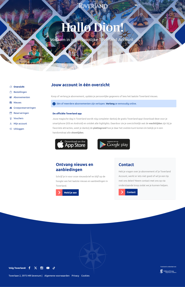 Led the end-to-end design and development of the Toverland Account (account.toverland.com) platform, a central identity and customer portal that forms the foundation of Toverland’s digital ecosystem. The platform provides guests with a single, secure account to manage tickets, season passes, personal data, preferences, and interactions across web, mobile apps, and on-site systems.